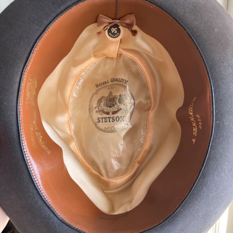 Pent brukt Stetson fedora i str 7 1/8, eller 57cm. Størrelsen kan finjusteres mindre i liningen der det er bånd som kan strammes.