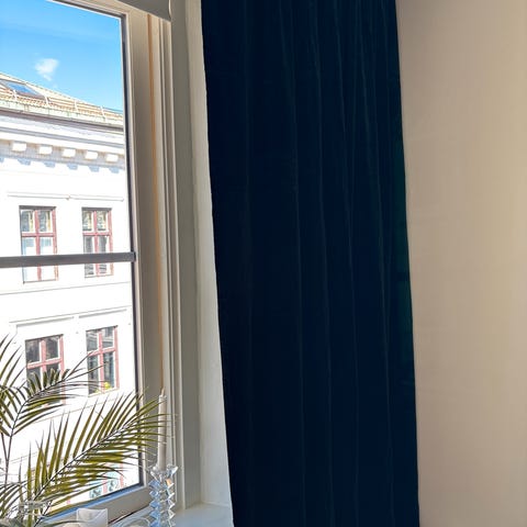 Selger 2 flotte velourgardiner i god stand. Pris 300 kr per stykk.