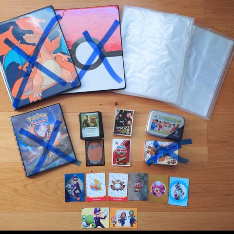 3 stk futteral/papirholdere med litt taping men totalt 144 stk kort som