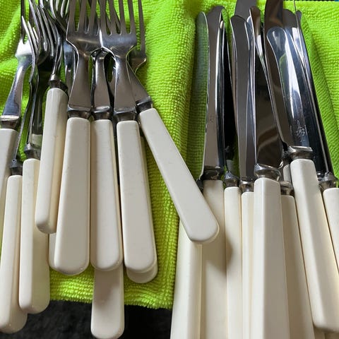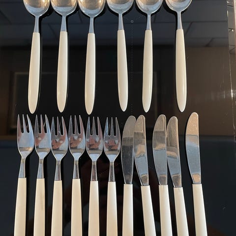 En del nytt bestikk selges samlet m/hvit skaft
