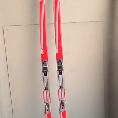 Skiene har vært brukt i noen sesonger, men er fortsatt i god stand.
