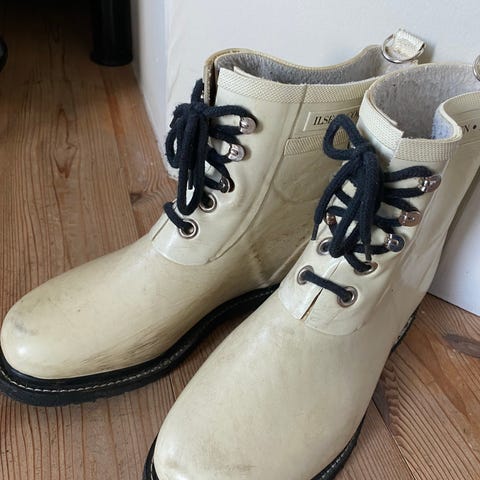 Forede Ilse Jacobsen regnstøvler i størrelse 41, hvit farge. Laget for å beskytte mot vått vær, egnet for bruk i regn og fuktige forhold.