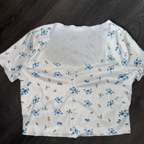 Selger en hvit crop top med gule blomster, størrelse M. Pent brukt og i god stand.