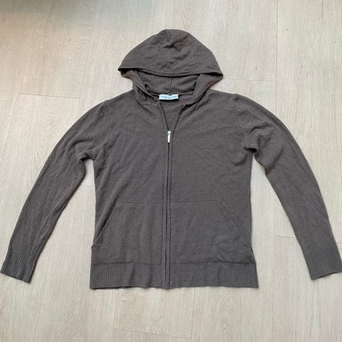 Kjøpt fordi jeg likte stilen, men ble dessverre ikke brukt. Veldig enkel og pen genser med hette, ribbestrikkede detaljer og klassisk passform.