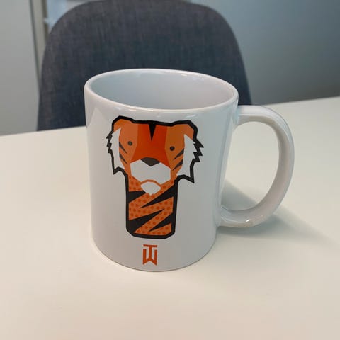 Keramisk krus/kopp med morsomt golfmotiv.