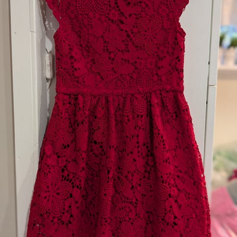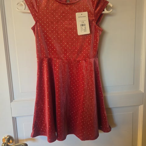 Hampton Republic 27 barn kjole i størrelse 134, laget av polyester. Kjolen er rød og designet for jenter. Den har et blomstermønster i stoffet og kort erme. Passer til ulike anledninger og hverdagsbruk.