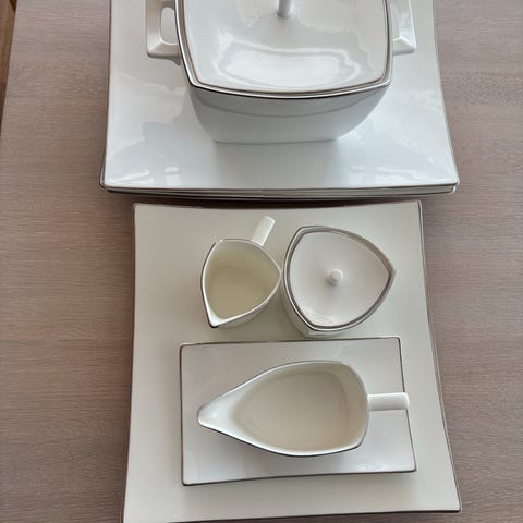 Brukt en gang, matt gull bestikk til 12 personer, kakegafler følger også med. Bestikket er kjøpt i utlandet. Selges kun for jeg må ha blankt gull til mitt servise, og dette er matt.