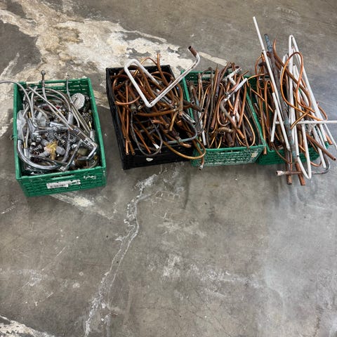 Bare kobbervekten gir en verdi på ca 2000 kr. Det er anslagsvis 1000 nagler av de større. Og anslagsvis 5 til 7000 av de mindre. Pluss mange skiver. Vurdert ut fra faghandelpriser (vedlagt noen eks) blir dette flere titusen kr. Selgeren alt samlet for vesentlig lavere pris.. Kom med bud.