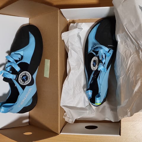 Skoene er kun brukt på én kort klatreøkt inne, men må dessverre selges da det bare ble den ene klatreøkten. 😅 De er som nye, ingen slitasje og lukter nytt.