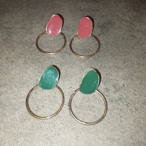 Øredobbene er håndlagde og helt nye. Glassdelen er håndlaget og håndplukket, veldig pene og delikate. Bøylen er laget av høykvalitets 18k gullbelagt messing.