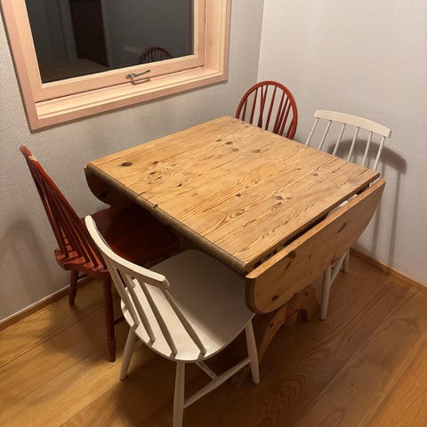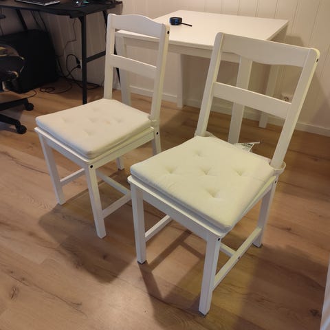 Malte kjøkkenstoler selges samlet. Stolene har vært i daglig bruk og virker slik de skal.