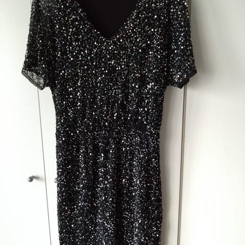 ASOS festkjole i størrelse L, farge grønn, laget av paljetter. Selger kjolen med tungt hjerte pga den ikke passer meg. Helt nytt