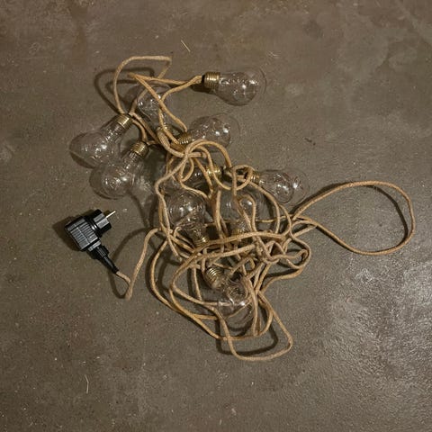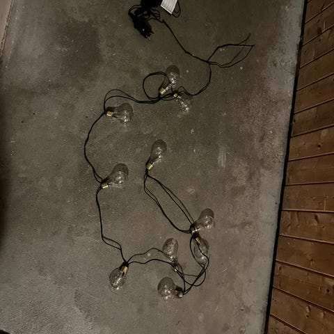 Kjøpt på Biltema: https://www.biltema.no/fritid/hage/hagebelysning/lysslynger/lysslynge-100-led-varmhvit-65-m-hvit-utbyggbar-istapper-2000048619