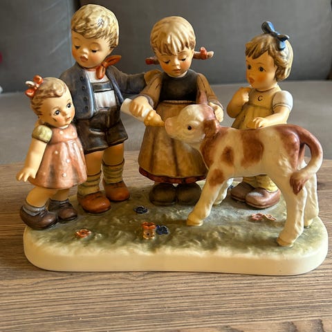 Mange fine Candy design engler i rødt hvit og blått med gullfarget maling. Se bilder for visuell beskrivelse og mål. Noen av de har litt slitasje i ansikt, men ser ellers fine ut. Selges 150 for de store 16-17 cm. De mindre koster 100 kr per stk. Avslag på pris ved kjøp av alle. Det er 5 figurer igjen.