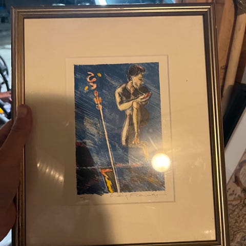 Flukten er tittelen på dette bildet. Aner ikke hva det står som kunstner.