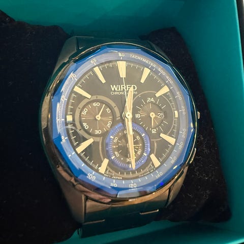Reward VIP herreklokke med stål lenke. Klokken har en blå urskive med flere kronograf-funksjoner og tachymeter på bezelen. Passer for herrebruk.