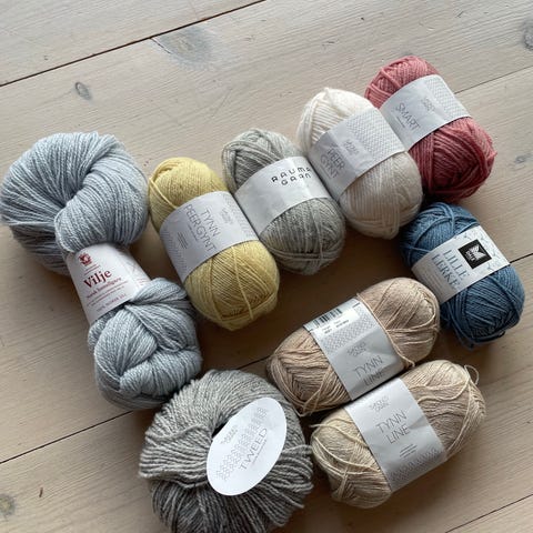 Dale Garn Lerke og Drops Kid-Silk garnpakke blandede farger og materialer på