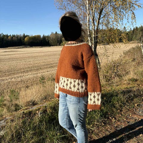 Hjemmestrikka genser str M selges kr 500,- + evt porto kr 69,-
