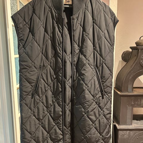 Sort lang boblevest fra FreeQuent, str L. Vattert med to lommer og splitt i siden.