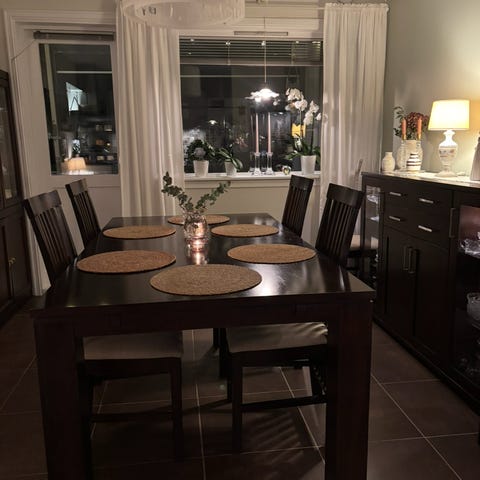 Pent brukt spisebord (som ny) og 4 svingstoler i kunstlær
