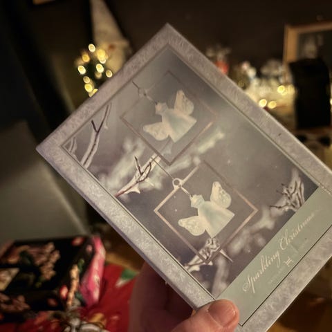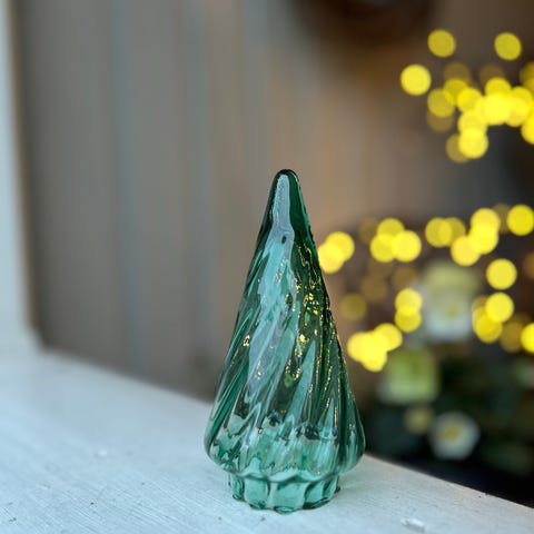 Julepost juleglede er håndlaget og har tradisjonelle juledekorasjoner i glass.