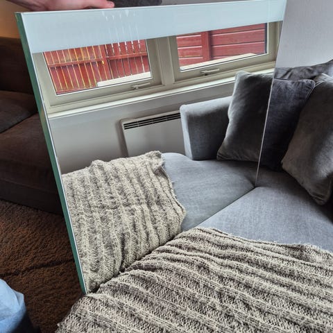 Nokre mindre bruksmerke langs kant nedst: nokre mindre felt med støv mellom spegel og ramme nederst som me ikkje får bort.