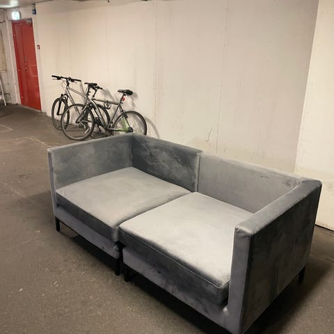 Selger to flotte sofaer samlet. Perfekte til venteområdet eller avslapsningsområdet på et kontor. Eventuelt i en gang. Putene trenger en vask, men ellers fin stand. Må hentes på Vea.