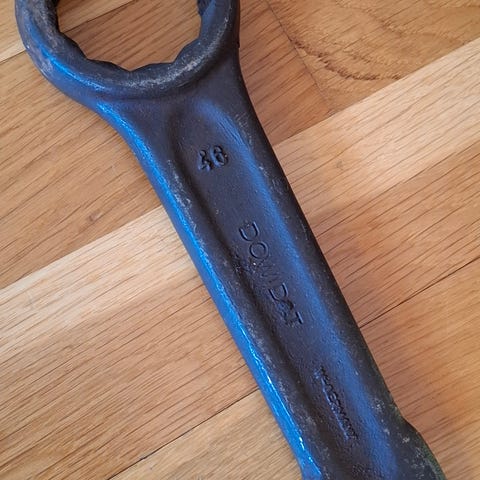 Gammel fastnøkkel 28.5 og 23.5 mm