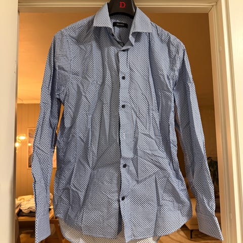 Helt ny herreskjorte fra Zara. Slim fit, hvit med blått mønster. Selges på grunn av feil størrelse.