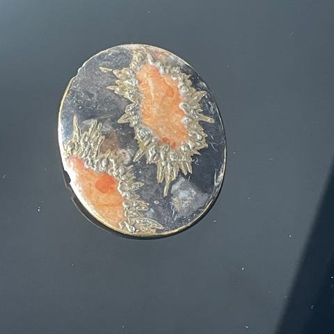 Dette er noe som jeg har samlet sammen fra mange esker med skrot som jeg vant på auksjon i 2016. (det meste av det ihvertfall). Siden planen om å starte brukthandel ble avlyst, så har det blitt liggende. Inneholder en polert ammonitt som er gjort om til et smykke. Det er et roterende harry potter sak med timeglass i. Selger ikke dette som nytt, da noe av dette kan være brukt. (harry potter saken og smykkeskrin er ubrukt)