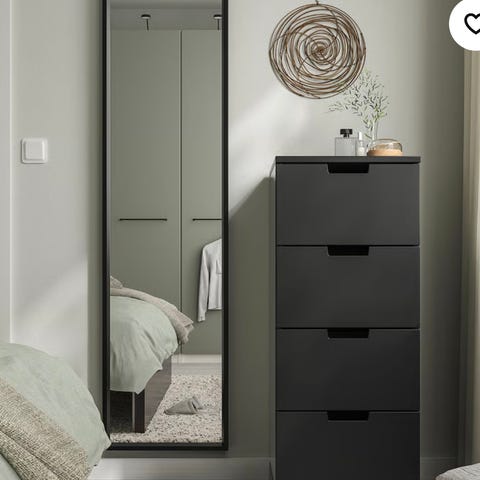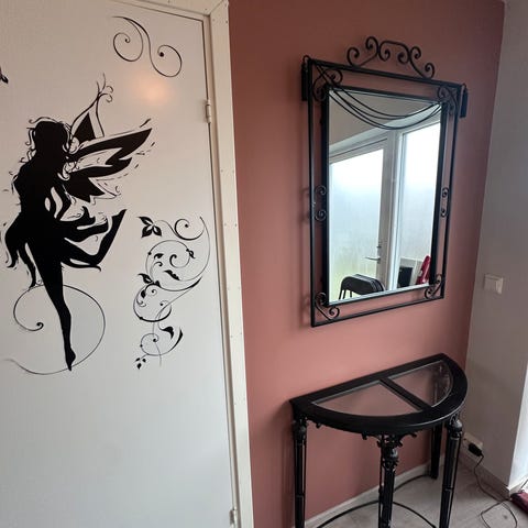 Stort speil med ramme, egnet for veggmontering i ulike rom.