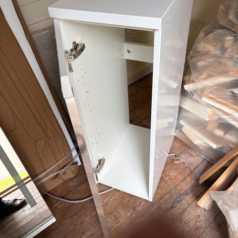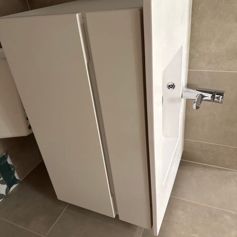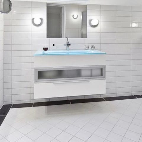 Servantskap med vask og skuffer, hvit. Speil og armatur