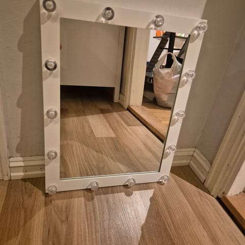 Speil med belysning kjøpt på Clas Ohlson, selges da det ikke brukes.