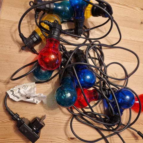 Jeg har også en lyslenke med fargede lyspærer, se mine andre annonser. Kan sende de samlet om ønskelig.