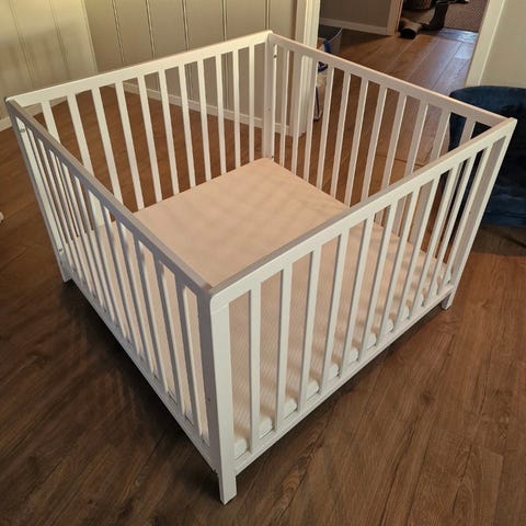 Pent brukt lekegrind fra Troll selges. Ble kjøpt brukt av oss for ca 1 år siden. Bunnen kan justeres i to høyder. Madrasser og den fletta puta kan følge med.