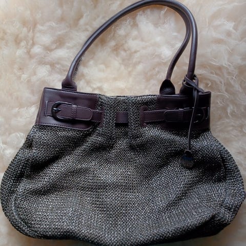 stoff veske med pent design. Vesken har flere farger i stoffmateriale og har justerbare stropper i mørk farge. Passer til daglig bruk og kan bæres på skulderen eller i hånden. Kan sendes mot at kjøper betaler frakt😊