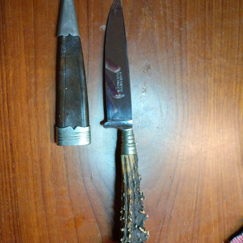 Jaktkniv, trofékniv, rådyrhov, rådyrfot-kniv, Hirschfänger, Trachtenmesser, Solingen, jakt, samlerkniv, souvenirkniv, Røros, tysk kniv, vintage kniv, friluftskniv.