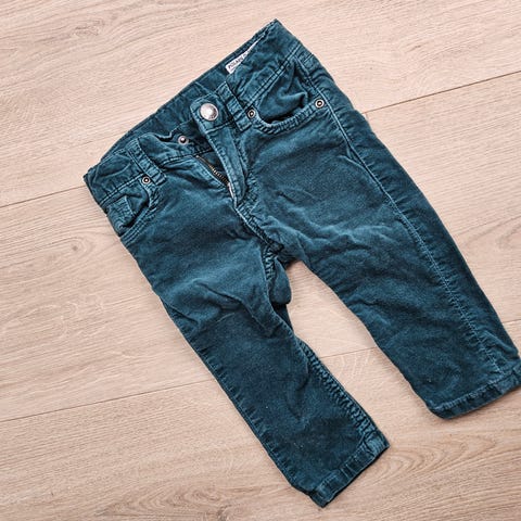 Pen blå bukse i velour fra Polarn O. Pyret i str 74.