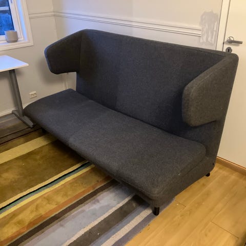 Out of production (I believe) sofa / convertible bed from Jotex. 2.5 years old, in good condition. Pick up in Sagene, Oslo. Buyer responsible for taking the sofa from the apartment on 6th floor. I believe it will fit in the (smallish) elevator but I can't be 100% sure. Otherwise there are wide fire escape stairs.