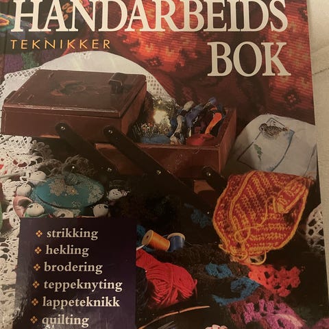 Cappelens Store Håndarbeidsbok håndarbeidsbok med teknikker for strikking, hekling, brodering, lappeteknikk, vevteknikk og knipling. Boken gir en oversikt over ulike håndarbeidsteknikker.