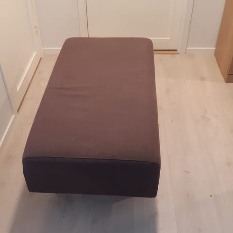 Padborg puff fra Jysk i oker-gul farge.