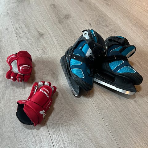 Ble brukt mye i fjor. Så anbefaler å slipe de opp! Gode og varme, og kan justeres fra str 31-34