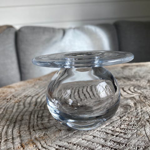 Den vakre og tidløse vasen Boblen mini (7cm) designet for Magnor Glassverk av blomsterdekoratør og TV-personlighet, Finn Schjøll.
