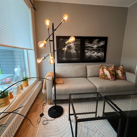 Tube led Gulvlampe selges, med dimbar belysning. veldig lite brukt kjøpt ny for 1 år siden på Lampehuset. Nypris da var på 1749kr,