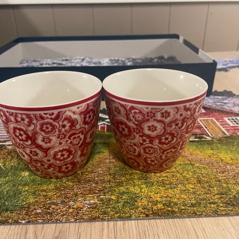 Selger seks kopper fra Green Gate samlet. Pent brukt, men selges da de ikke lenger brukes. Perfekt som kaffekopp.