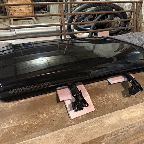 Selger en Skiguard 850T takboks i sort, tatt av fra Audi A3. Takboksen er i god stand og passer perfekt til flere modeller. Perfekt for deg som ønsker ekstra lagringsplass på bilen, enten til ski, ferie eller hverdagsbruk.