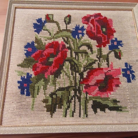 Åkle teppe med dimensjoner 140 x 94 cm. Teppe med tradisjonelt mønster og medfølgende veggoppheng.