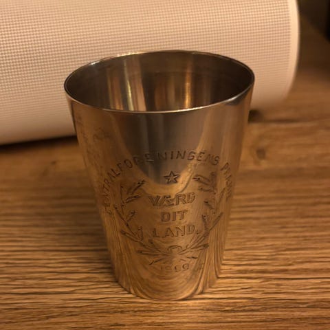 Dette er en gjenstand med både lokalhistorisk, idrettshistorisk og dekorativ verdi, og passer like godt i en samling som i et interiør med historisk preg. Høyden er cirka 9 cm og diameter'n er cirka 7 cm.