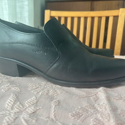 Topman pensko størrelse 8 svart (tilsvarer str 41-42: US str 8 = 41-42, UK str 8 = 42). Skoene er svarte og ser ut til å være laget av skinnmateriale. Egnet for formelle eller semi-formelle anledninger. Kan sendes mot at fraktpris vippses på forhånd.