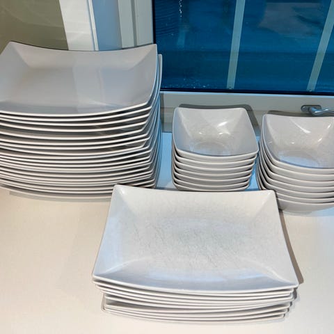 10 tallerkener og 10 dype tallerkner -30kr/stk 6 skål- 20kr/stk